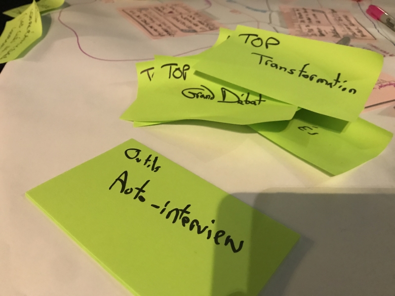 - Participer à un Grand Débat en facilitant un forum ouvert mais les participants ont eu du mal à changer de table, et une autre table où des extravertis monopolisaient un peu trop la parole